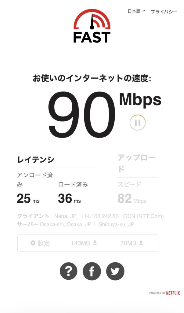 ホテルWi-Fiは90Mとかなり高速でPCもさくさく動いて快適です!