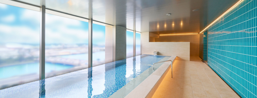 最上階スカイスパでリセット:那覇の空を感じながら広い湯船に浸かれる大浴場は、ユニットバスでは味わえない至福のひとときです。