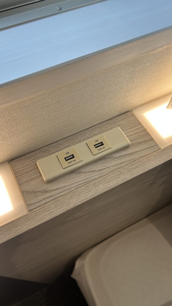 コンセントは机にしかないので寝るときに充電したいならUSBケーブルを忘れずに