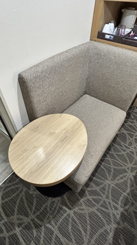 テーブルはそれほどスペースはなくてPC置けるくらいです